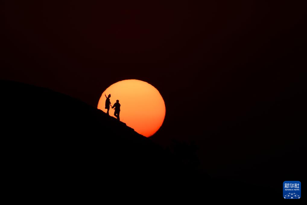 在融水苗族自治縣桿洞鄉堯告村高山牧場,村民在夕陽下練習吹蘆笙(2021年1月18日攝)。