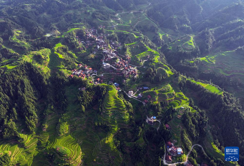 這是融水苗族自治縣桿洞鄉堯告村(無人機照片,8月15日攝)。