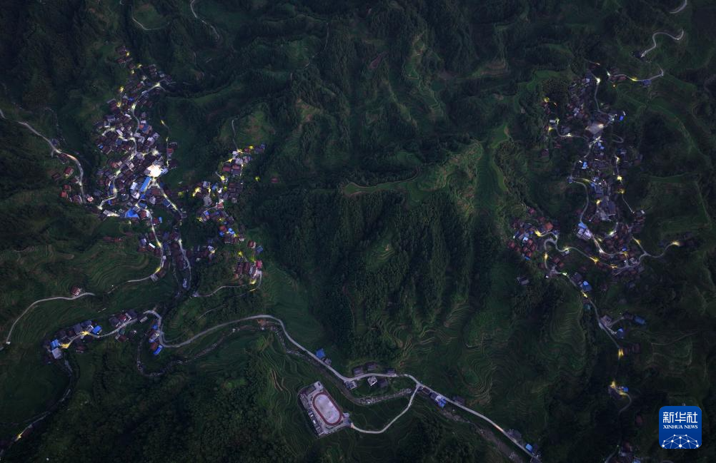 這是融水苗族自治縣桿洞鄉堯告村夜色(無人機照片,8月14日攝)。