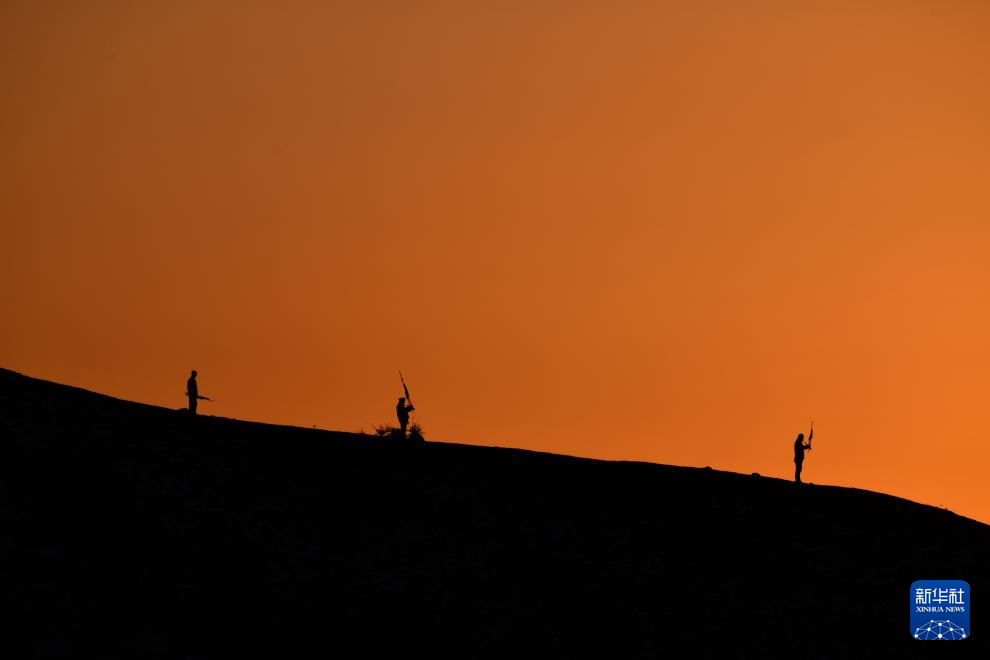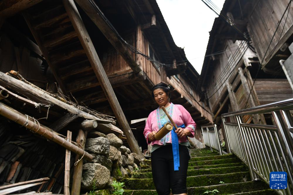 在融水苗族自治縣桿洞鄉堯告村,村民蒙金迷在打更巡寨(8月13日攝)。