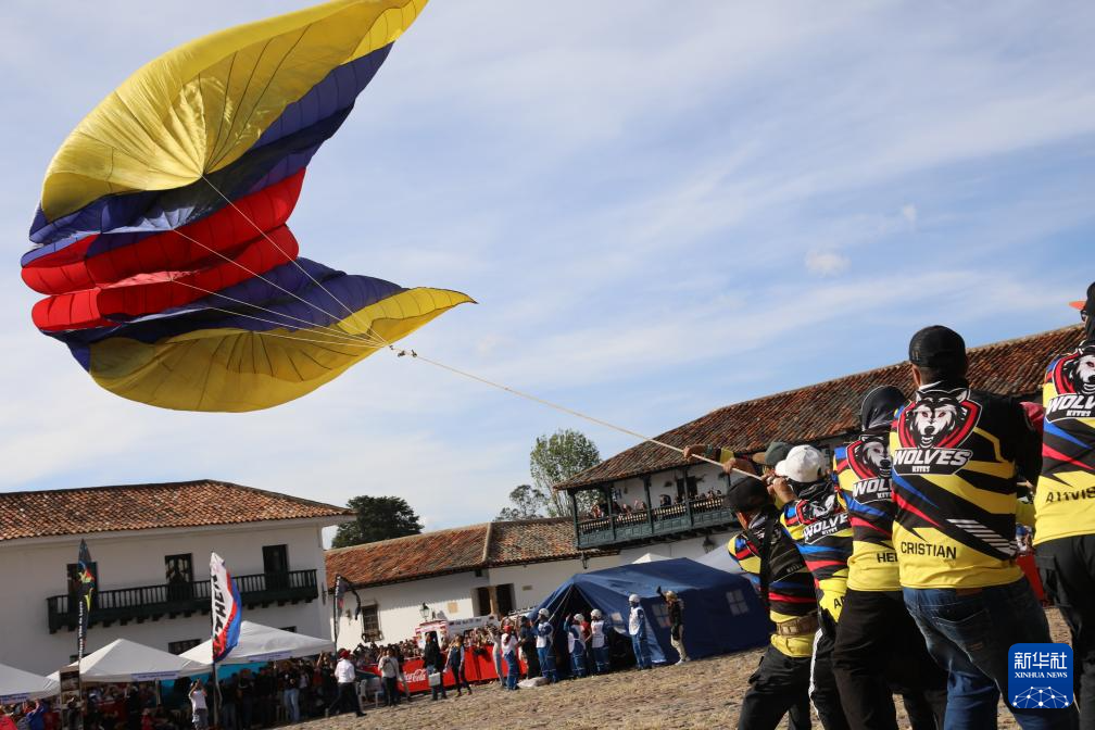 8月17日,在哥倫比亞萊瓦,人們放飛哥倫比亞國旗顏色的巨型風箏。