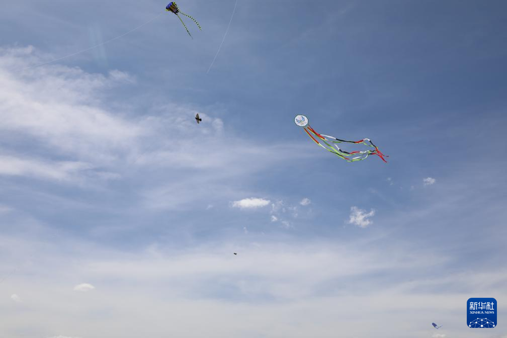 8月17日,在哥倫比亞萊瓦,鳥兒和風箏一起飛在空中。