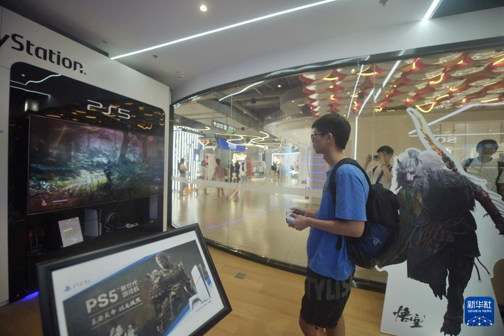 8月20日,游戲愛好者在杭州一家索尼門店通過游戲機體驗游戲《黑神話:悟空》。
