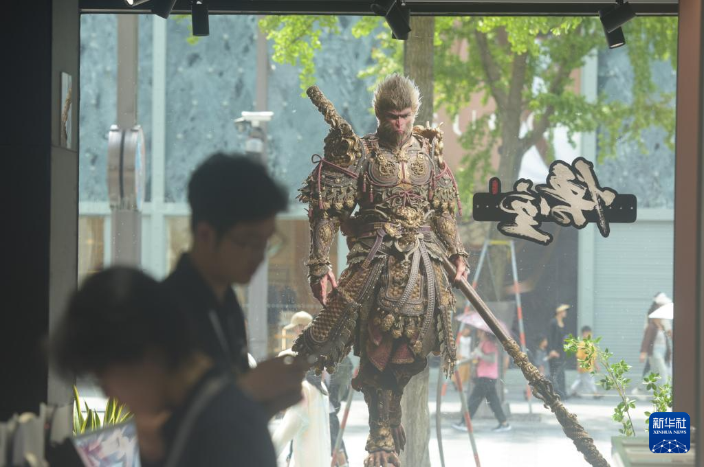 這是8月20日在杭州一家索尼門店拍攝的首款國產3A游戲《黑神話:悟空》中悟空的形象海報。