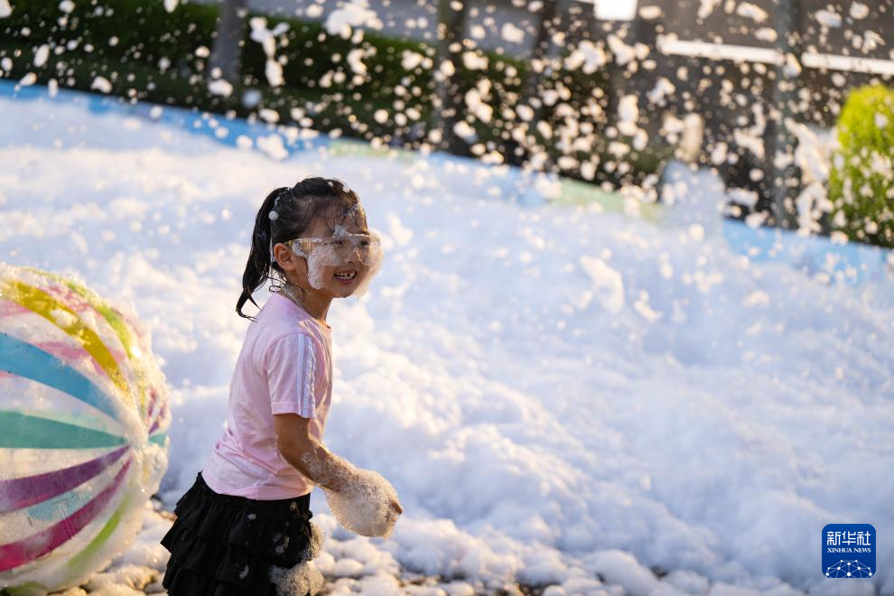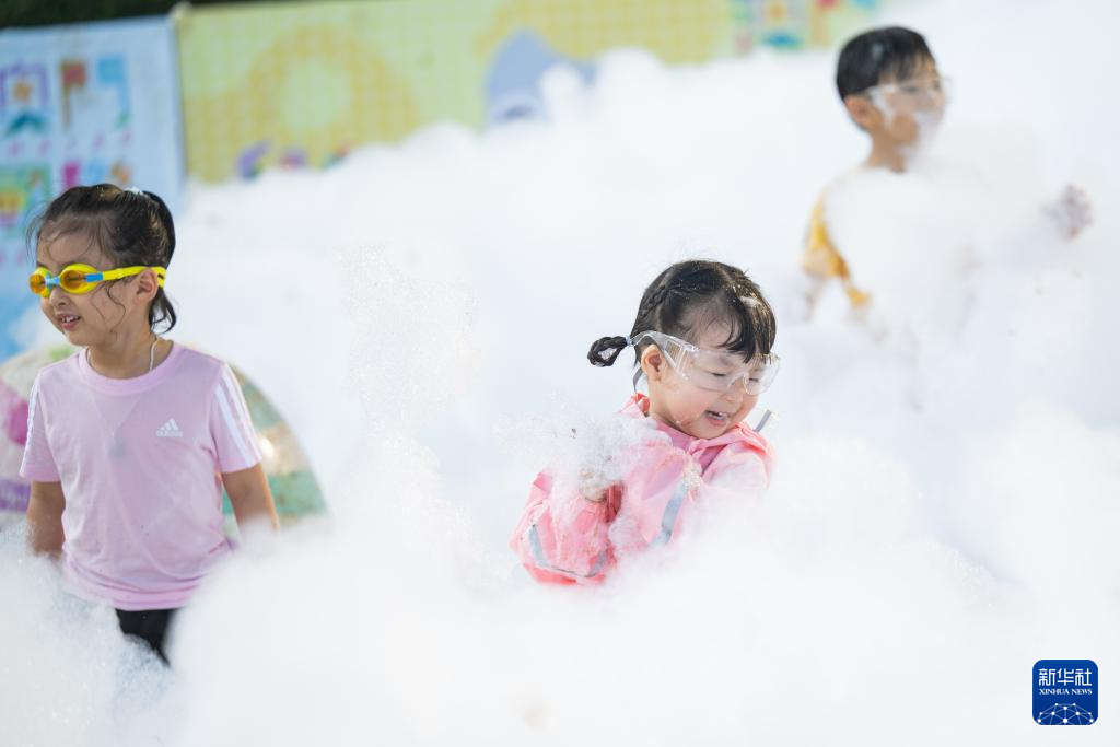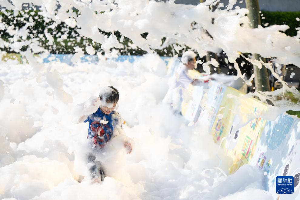 8月24日,小朋友在“童樂日”藝術嘉年華泡沫派對上游玩。