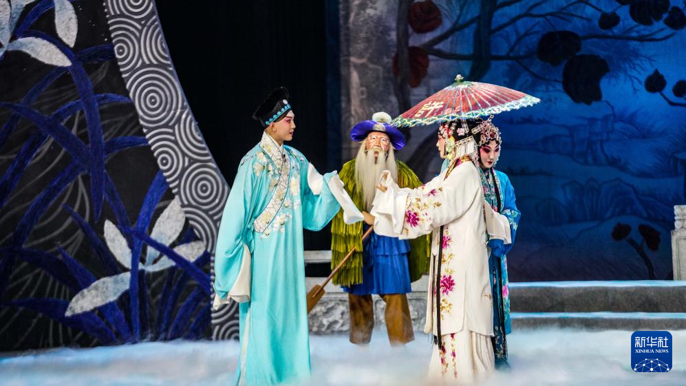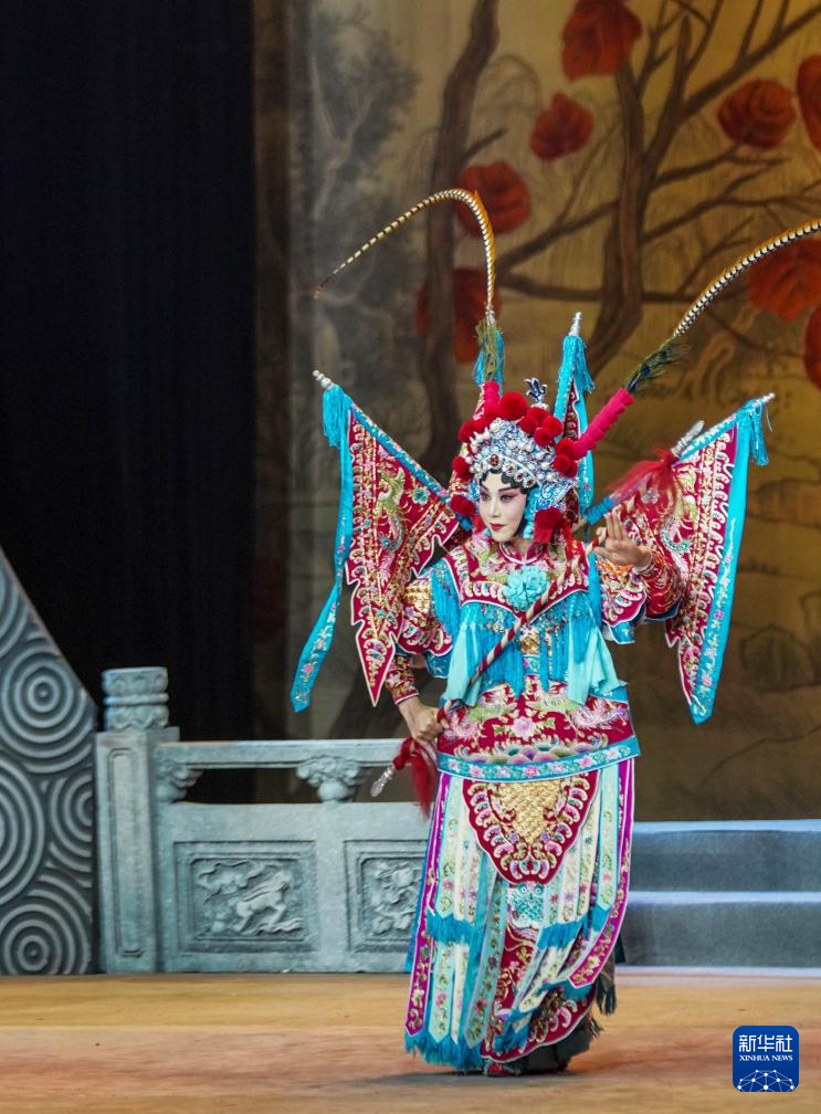 8月29日,京劇演員在吉林市人民大劇院表演京劇《白蛇傳》選段。