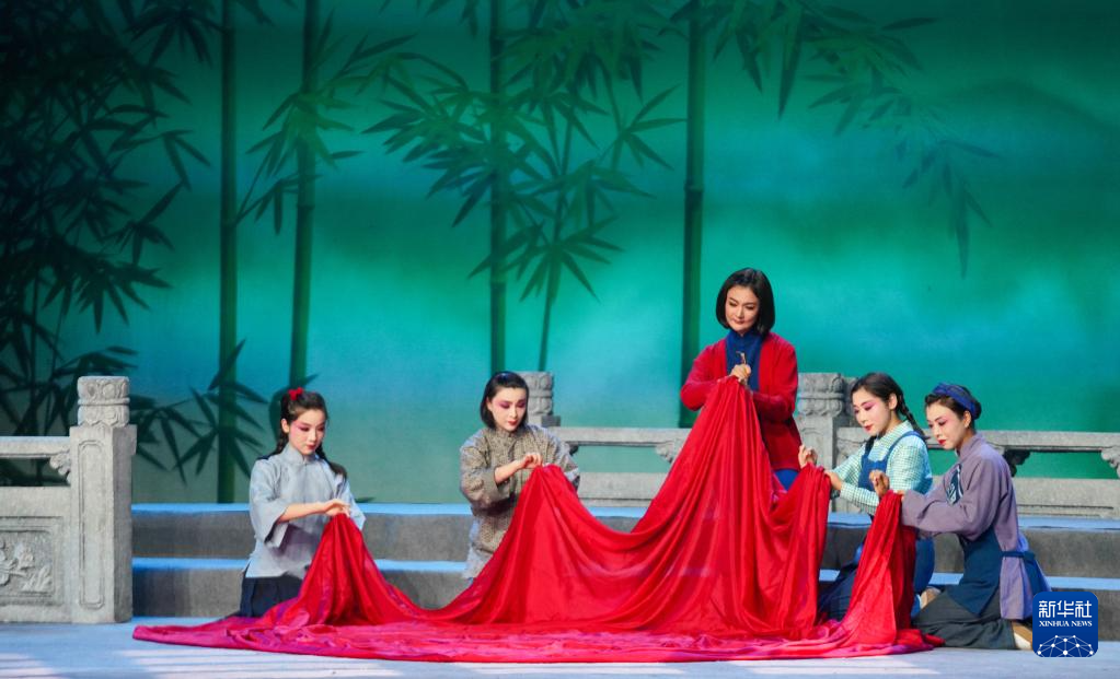 8月29日,京劇演員在吉林市人民大劇院表演現代京劇《江姐》選段。