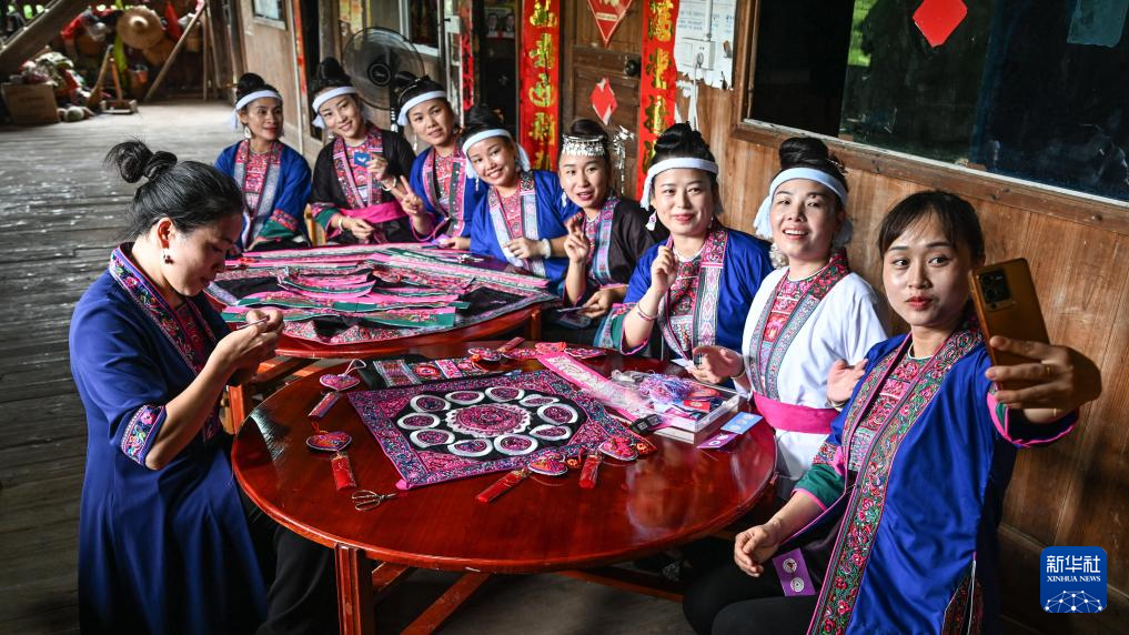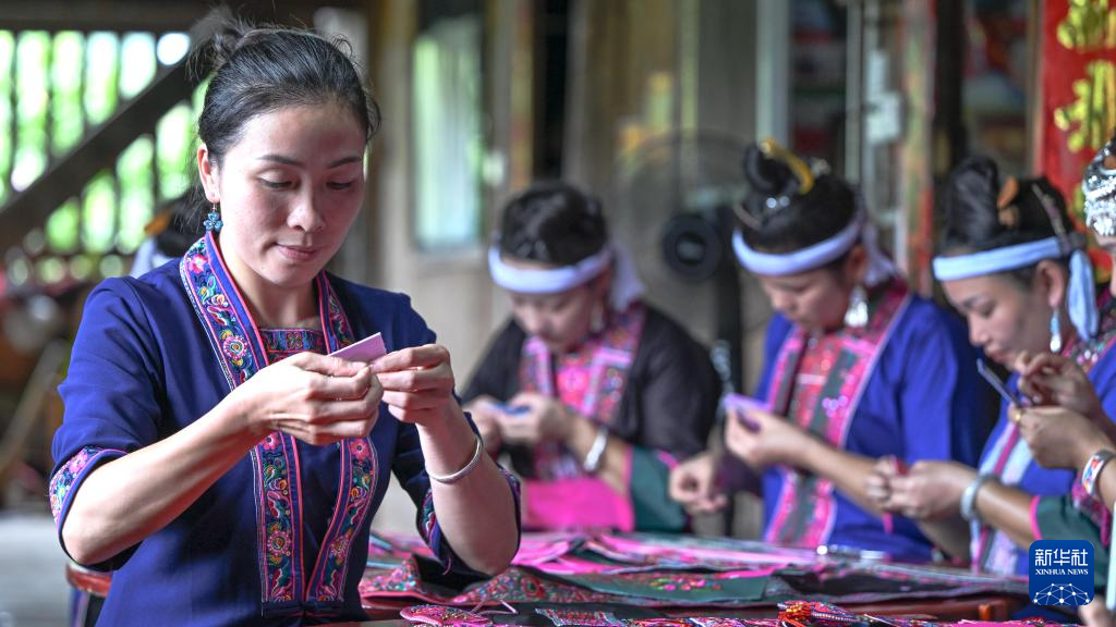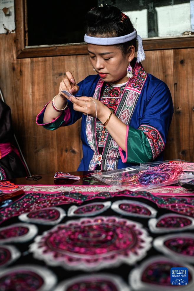 在廣西三江侗族自治縣,侗族刺繡是一種集紡織、印染、剪紙、刺繡于一體的傳統手工藝,其繡品圖案精美、色彩艷麗,成為助力侗鄉民眾增收的特色產業。