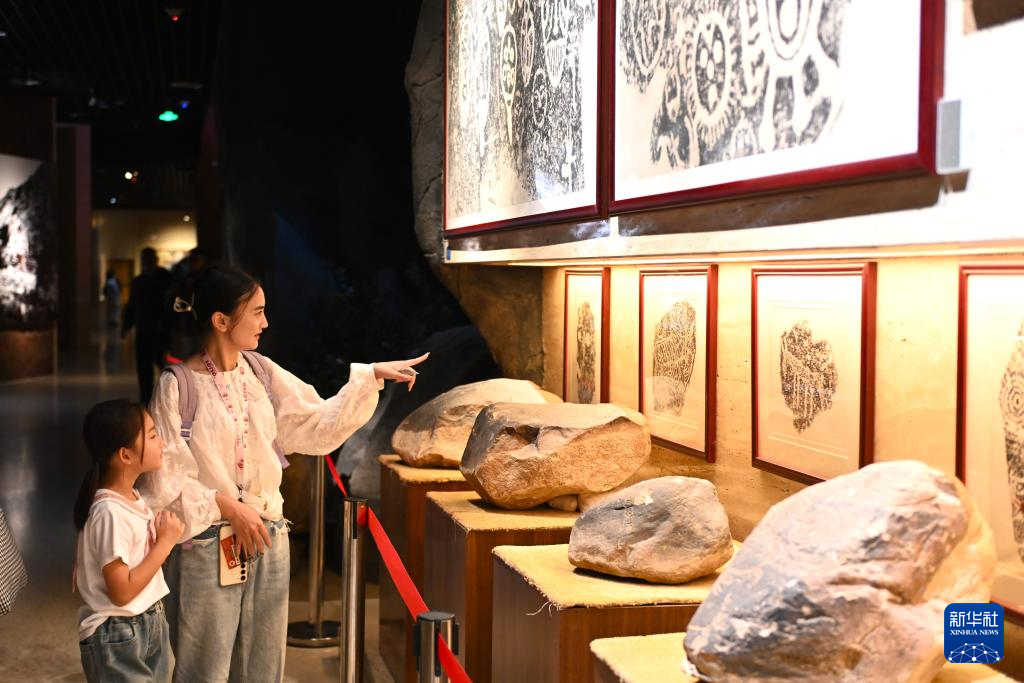9月1日,游客在寧夏博物館觀賞賀蘭山巖畫。