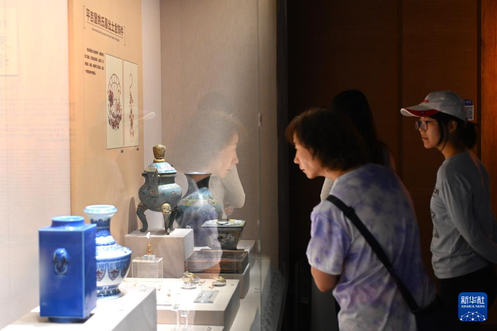 9月1日,游客在寧夏博物館觀賞平吉堡姚氏墓出土文物。