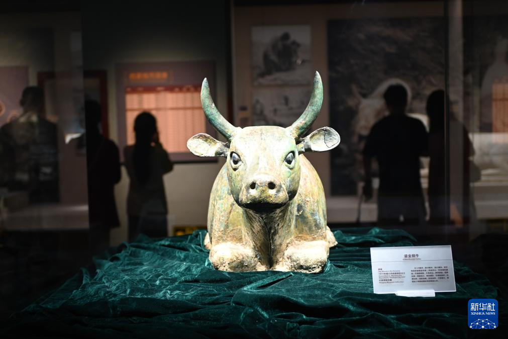 這是9月1日在寧夏博物館拍攝的鎏金銅牛。