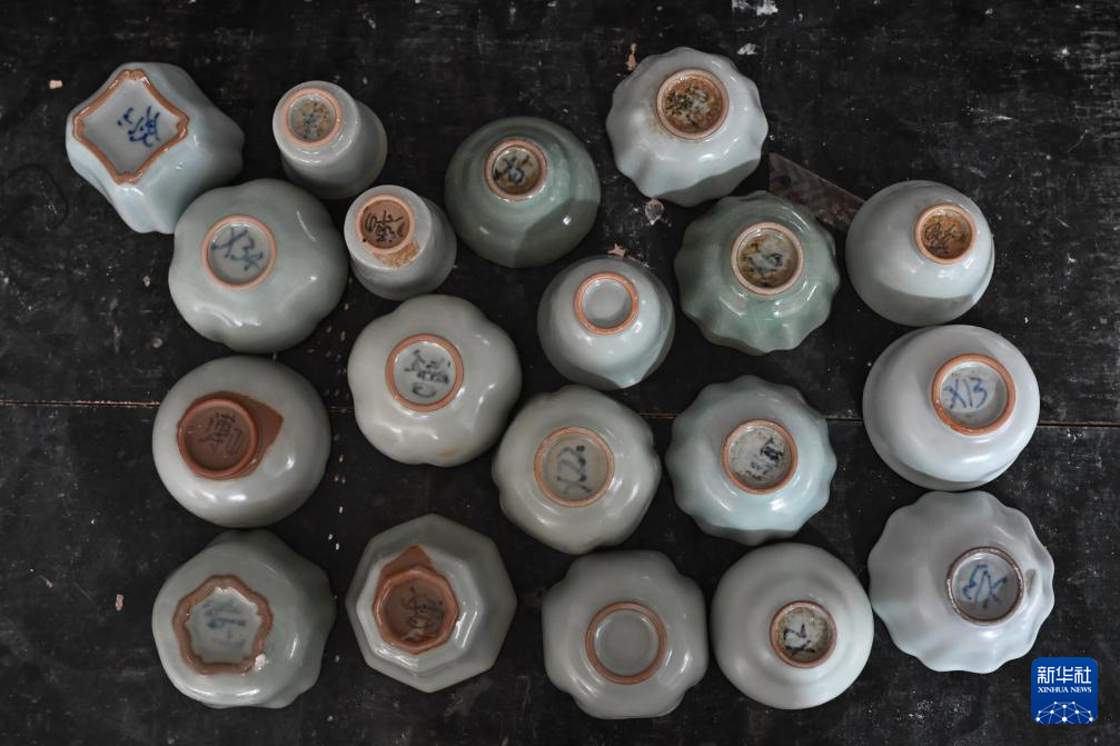 這是李善明反復研究燒制汝瓷時的試驗品(8月28日攝)。