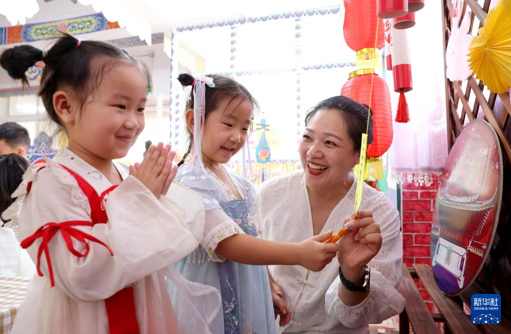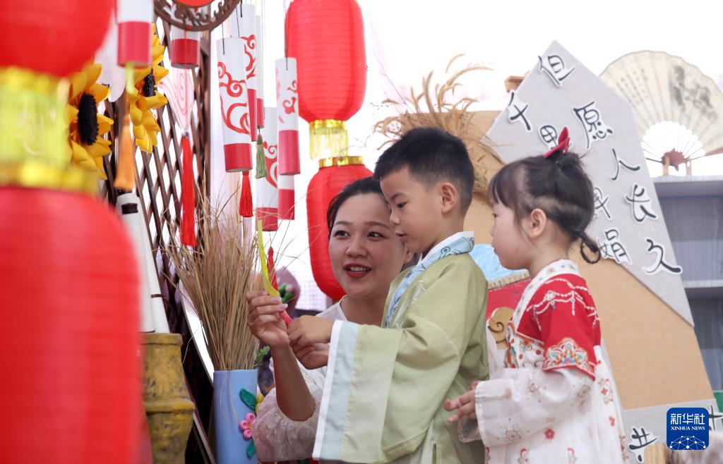 當日,河北省石家莊市藁城區通安幼兒園開展迎中秋幼兒民俗主題活動,孩子們在老師的指導下做月餅、猜燈謎,感受傳統民俗的魅力。