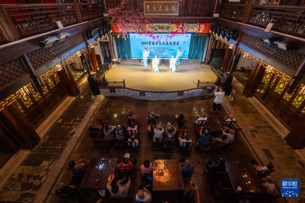 9月4日,在常德河街,國家級非遺項目常德絲弦的演員為游客表演。