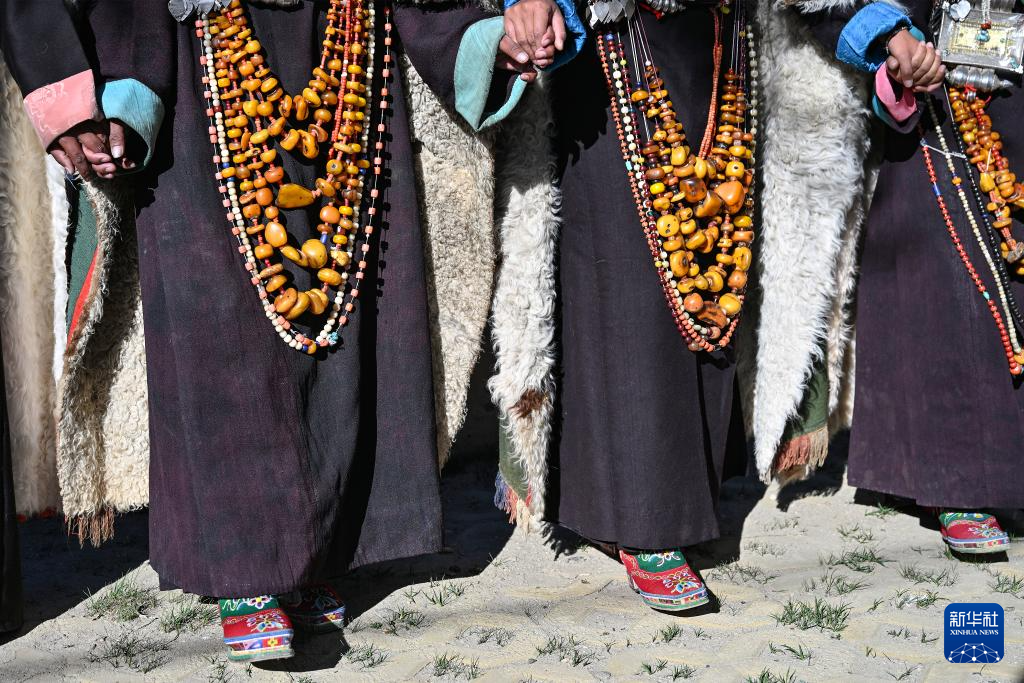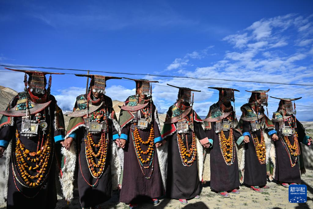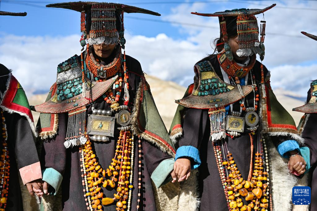 9月9日,在西藏阿里地區普蘭縣科迦村,村民身著普蘭服飾表演宣舞。