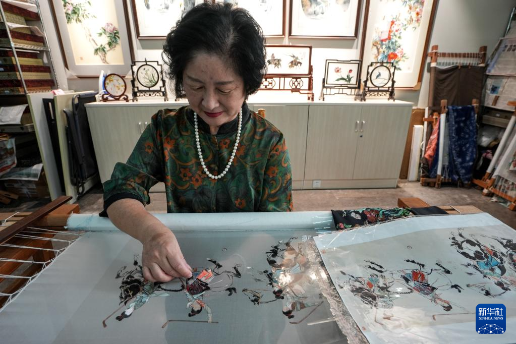 9月10日,中國工藝美術大師趙紅育在制作無錫精微繡雙面繡作品。蘇繡(無錫精微繡)于2008年被列入第二批國家級非物質文化遺產。