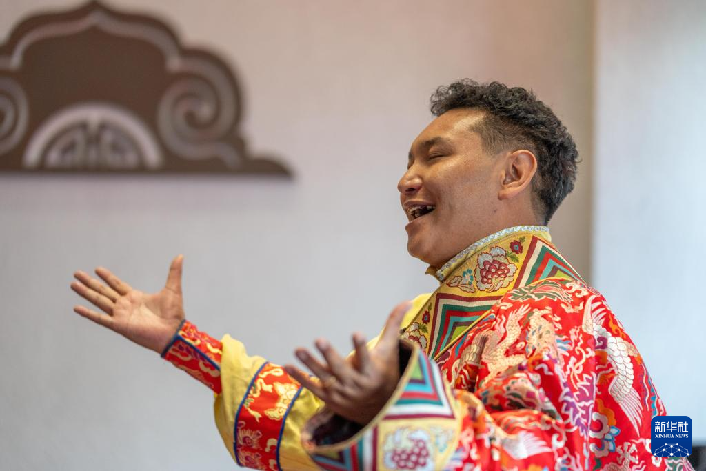 9月13日,格薩爾說唱藝人斯塔多吉在發布儀式現場表演格薩爾說唱。