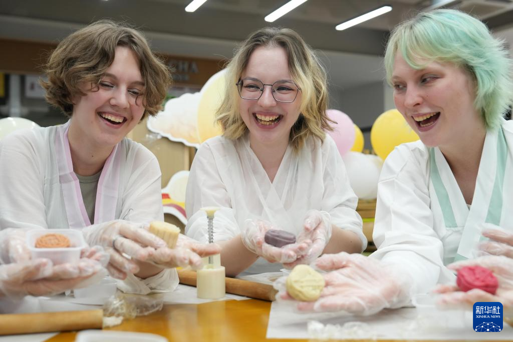 9月13日,位于重慶市北碚區的西南大學舉行“月盈九州,此情共留”中外文化交流活動,中外師生學做月餅。
