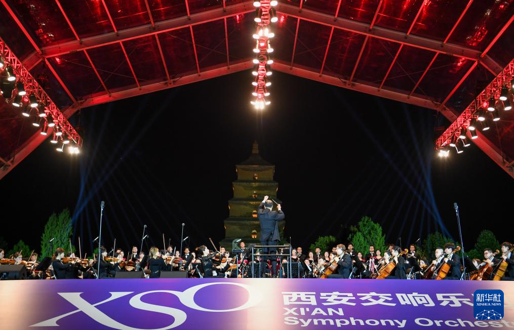 這是9月13日拍攝的2024西安交響樂團大雁塔戶外公演現場。
