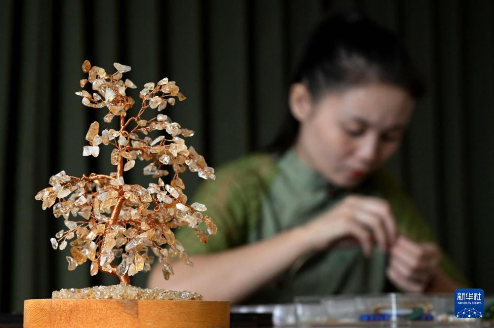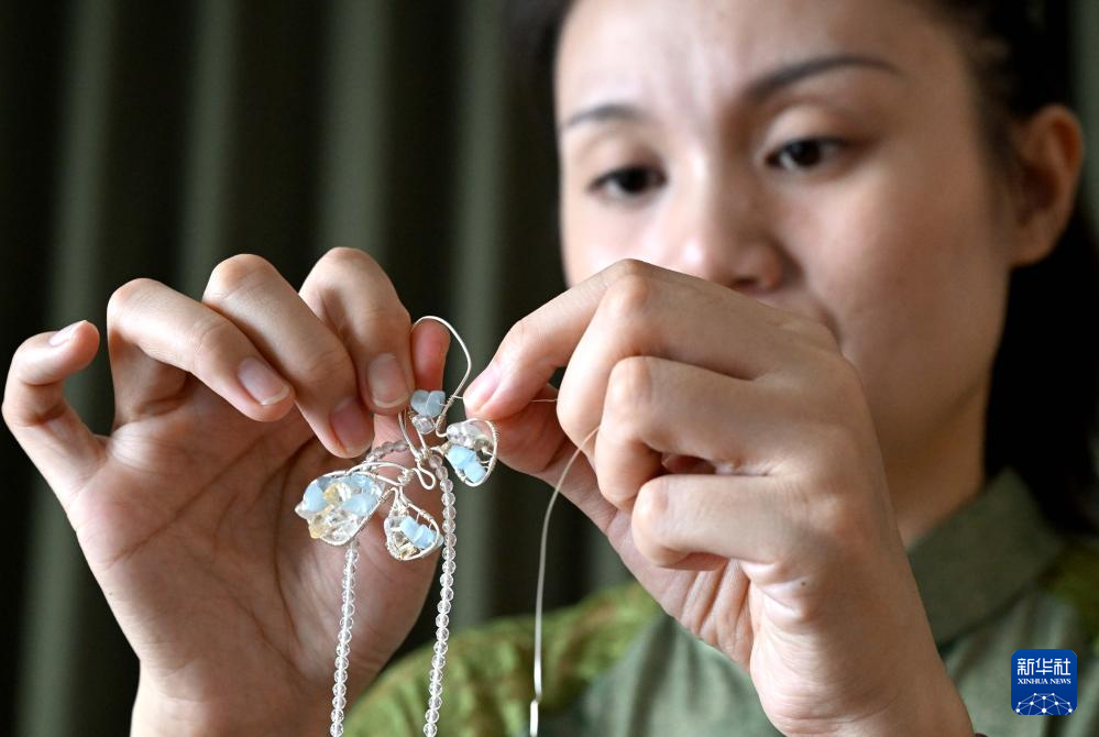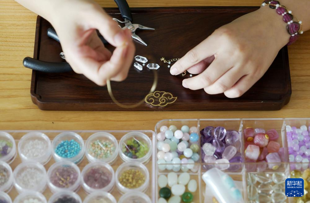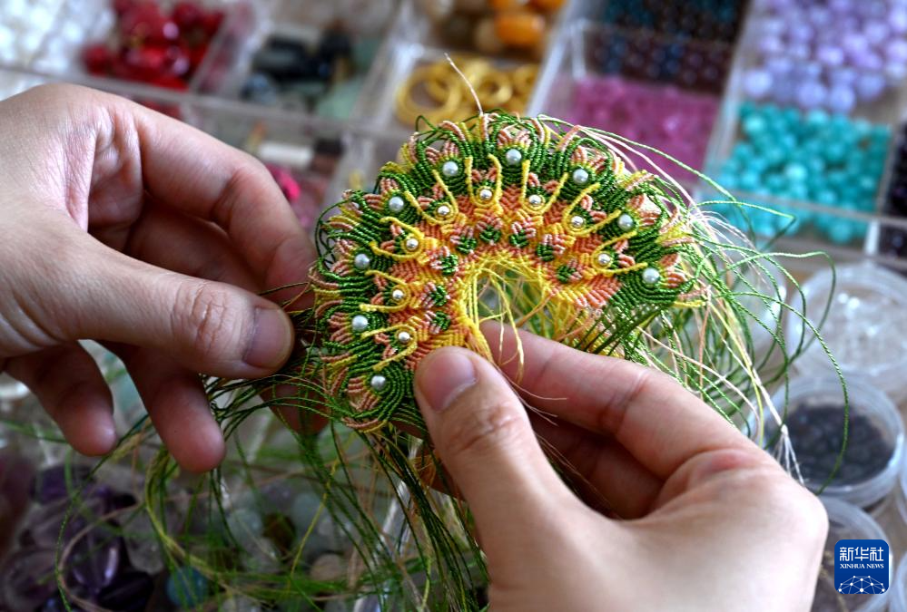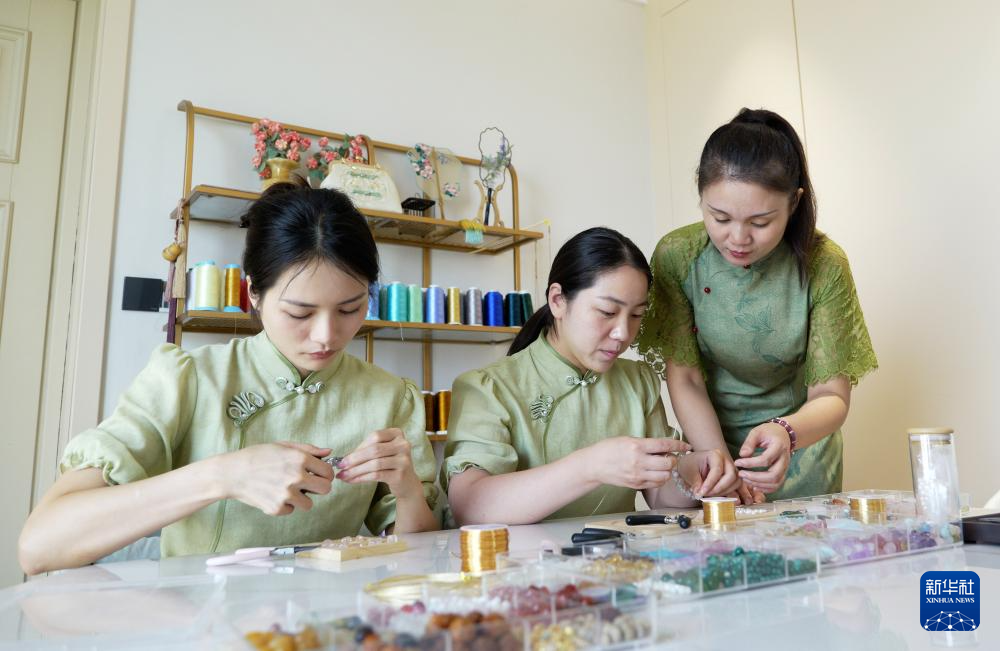 為了讓更多人了解和傳承輯珠技藝,楚蒙丹走進社區,教更多喜歡輯珠技藝的居民學習,她還通過直播授課的形式,讓這項技藝進入更多人的視野。