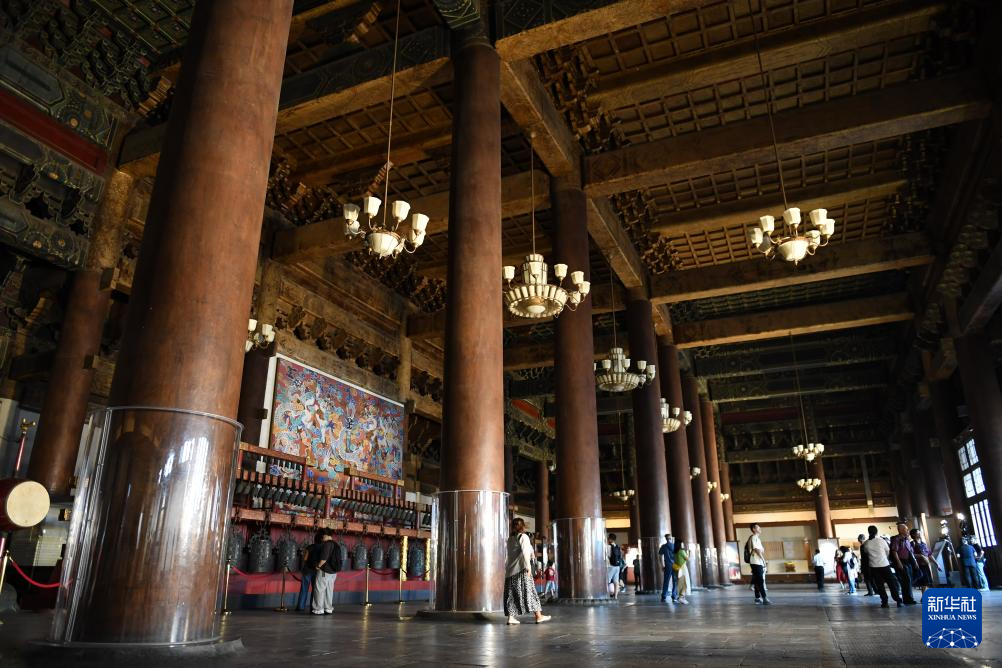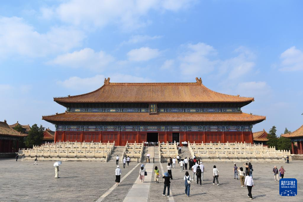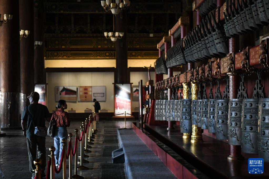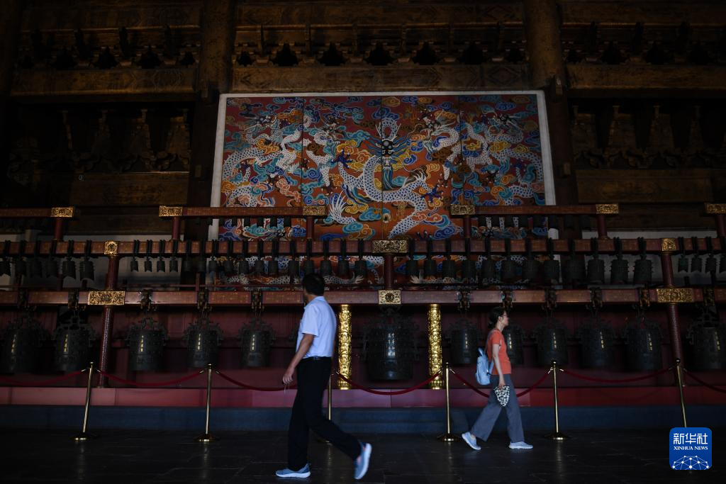 近日,北京太廟享殿恢復對外開放,吸引不少游客參觀。享殿建于明永樂年間,是太廟的主體建筑,游客在殿中可親身感受其宏大莊嚴的建筑特點。目前,享殿內正在舉辦“太廟中軸:太廟歷史文化專題展”,從建筑禮制和祭祀文化兩個角度,介紹太廟的歷史與文化。