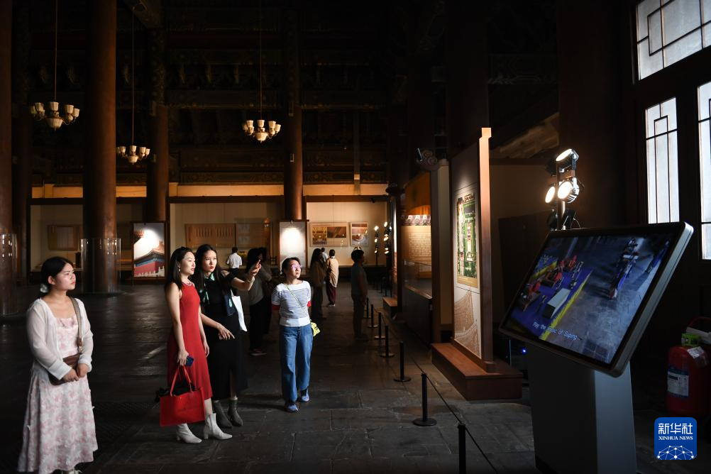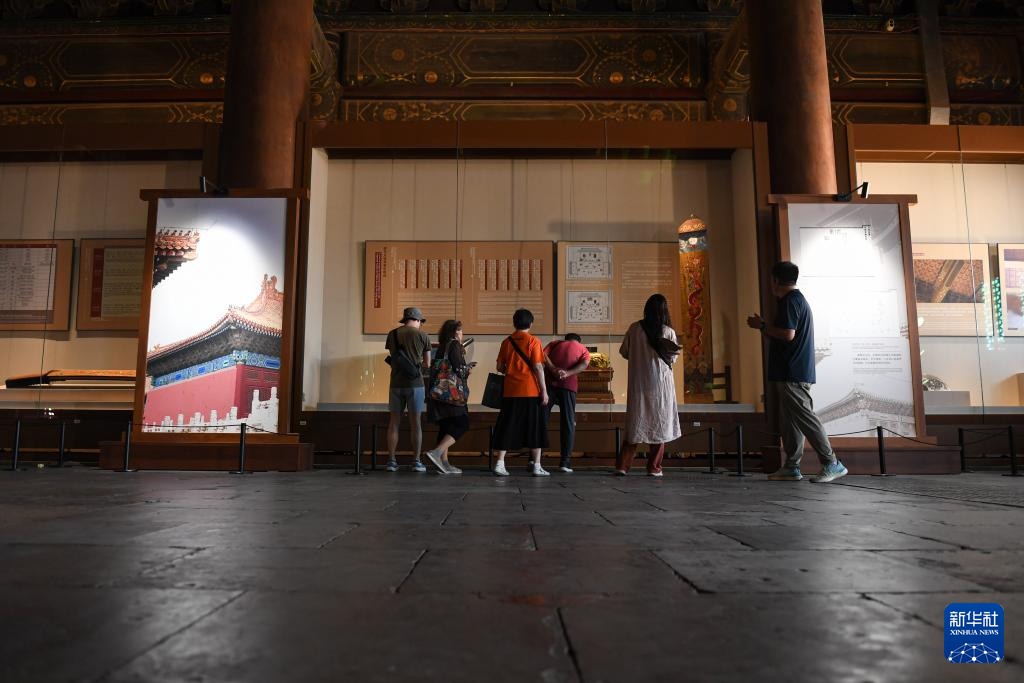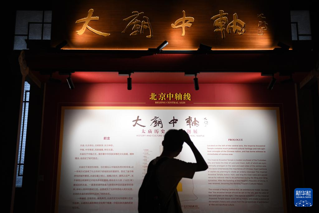 9月19日,游客在太廟享殿觀看“太廟中軸:太廟歷史文化專題展”。