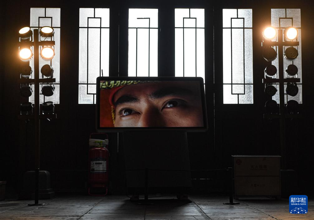 一部講解古代祭祀流程的影片在太廟享殿內的“太廟中軸:太廟歷史文化專題展”上播放(9月19日攝)。