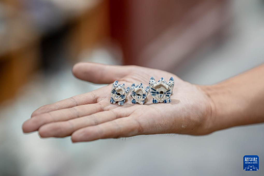 王子強制作的迷你款青花釉瓦貓(9月18日攝)。