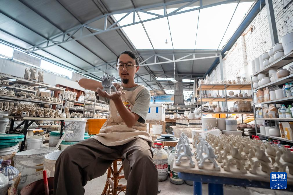 云南省玉溪市“90后”陶藝師王子強畢業于玉溪師范學院,他在大學與陶藝和瓦貓文化結下了不解之緣。為了讓這個傳統文化符號重新煥發生機,王子強從玉溪、大理、昆明等地的各式瓦貓中汲取靈感,在創作中融入現代設計與個性化創意,使傳統瓦貓在功能、外形、顏色、尺寸上都有新的突破,經過10年的傳承與創作,逐漸形成了自己的風格,開發出擺件等一系列工藝品。