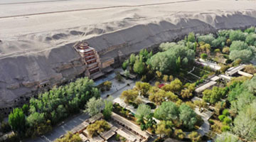 改造升級后松木場農貿市場頂部裝飾的油紙傘(9月23日攝)。