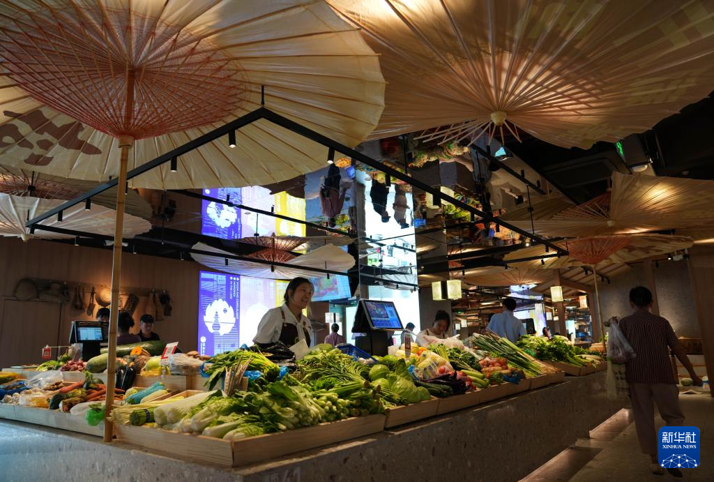 日前,位于杭州市西湖區北山街道的松木場農貿市場經過改造升級后啟動試營業。改造后的菜市場將繪畫、書法、文學等元素融入內外部空間,為菜市場增添藝術氛圍,提升了整體形象。