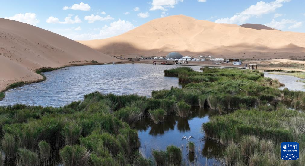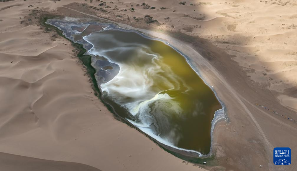 2024年7月31日拍攝的巴丹吉林沙漠中的南海子(無人機照片)。新華社記者 貝赫 攝