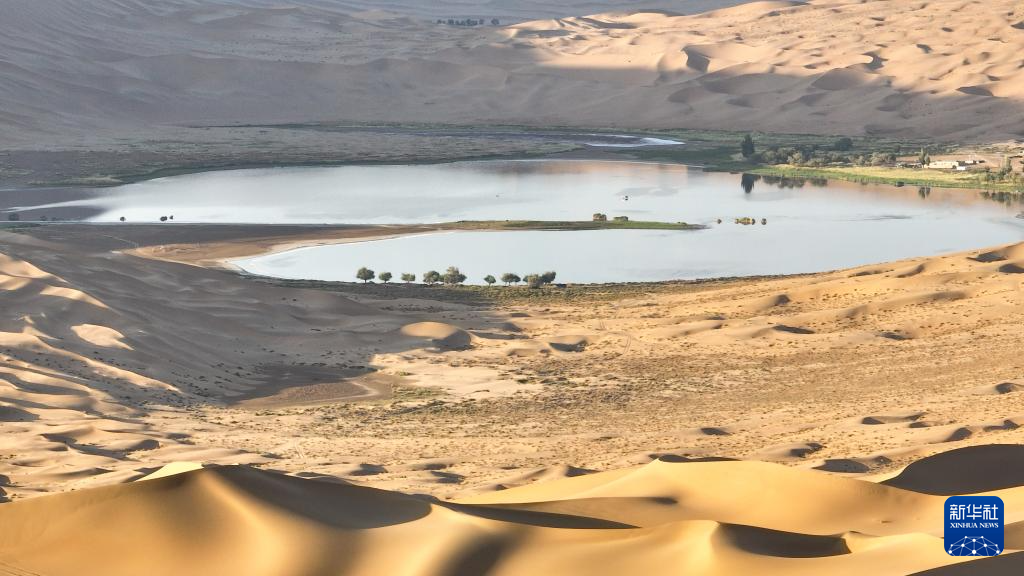 2024年7月30日拍攝的巴丹吉林沙漠中的音德日圖湖(無人機照片)。新華社記者 貝赫 攝