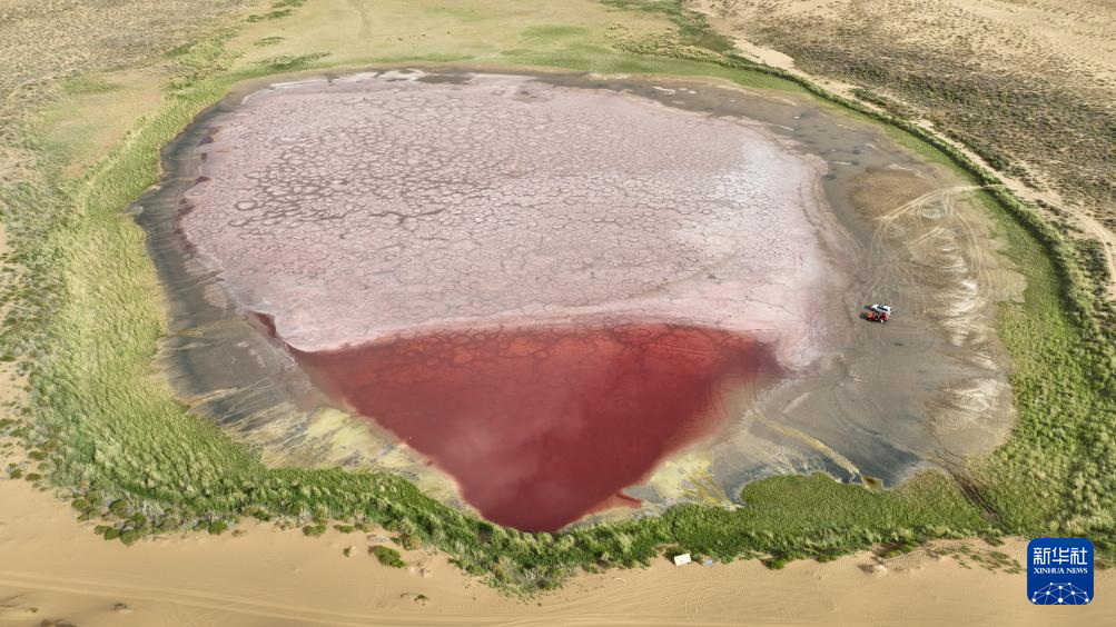 2024年7月30日拍攝的巴丹吉林沙漠中的紅海子(無人機照片)。新華社記者 貝赫 攝