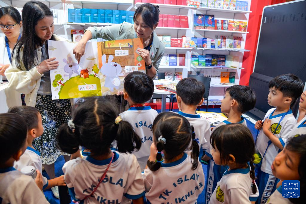 9月25日,在印度尼西亞雅加達會展中心,小朋友參觀印尼國際書展中國出版代表團展臺。