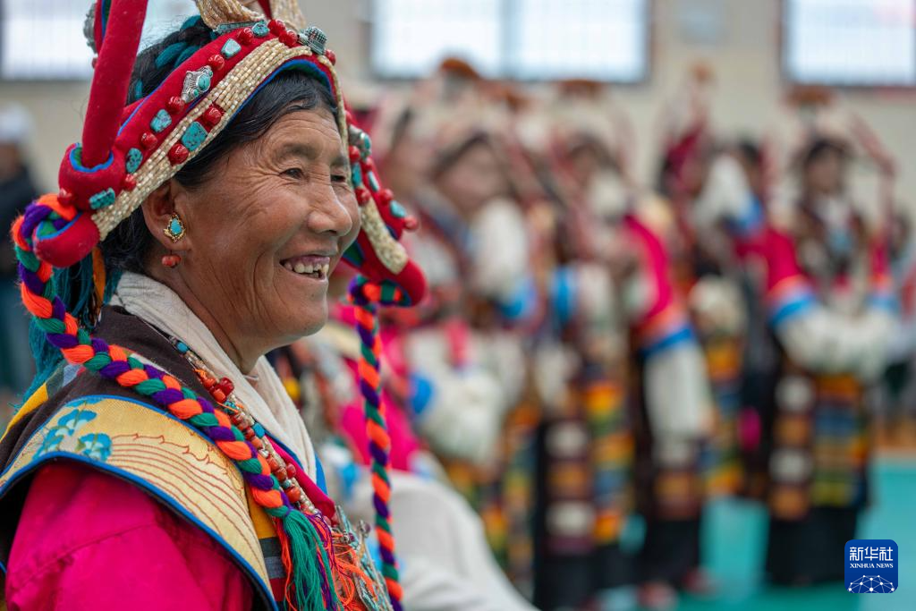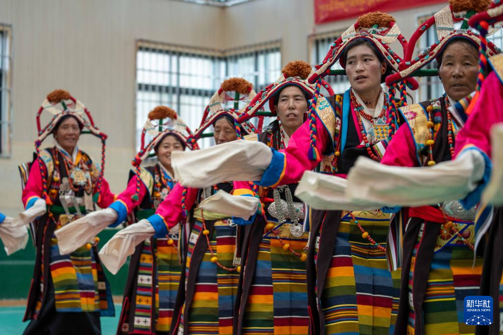 在西藏日喀則市定結縣,演職人員在表演“薩爾諧欽”(9月25日攝)。