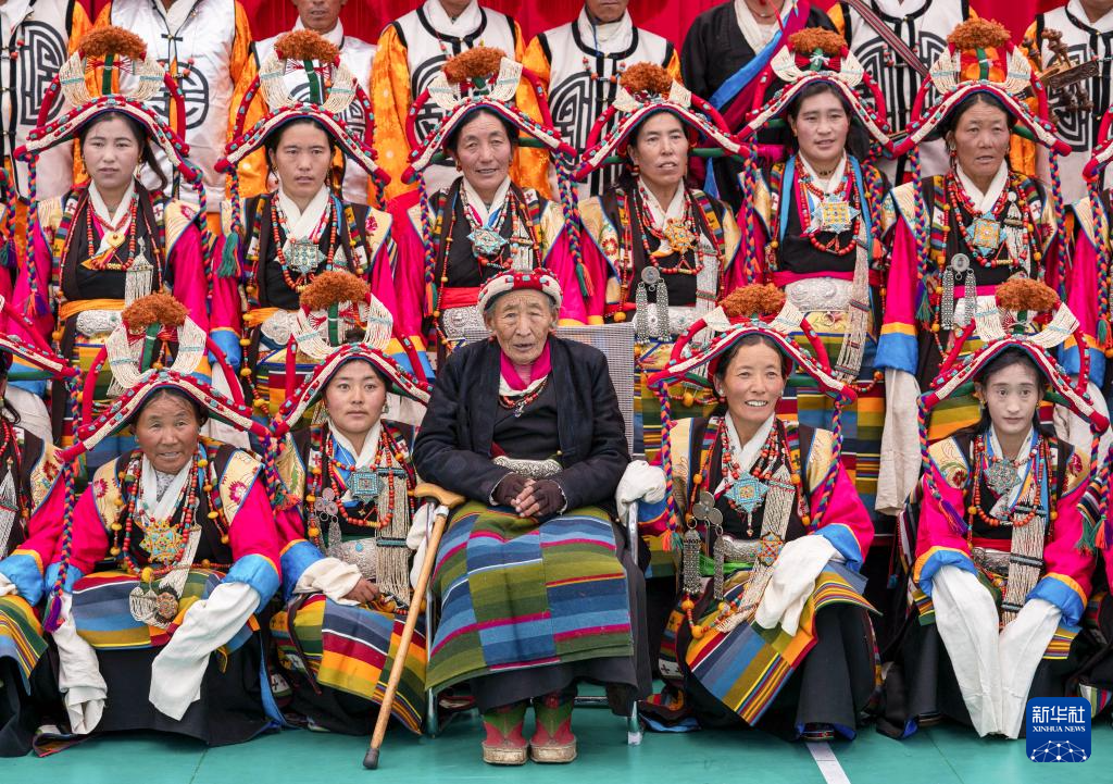 這是在西藏日喀則市定結縣拍攝的穿戴傳統服飾的“薩爾諧欽”演職人員(9月25日攝)。