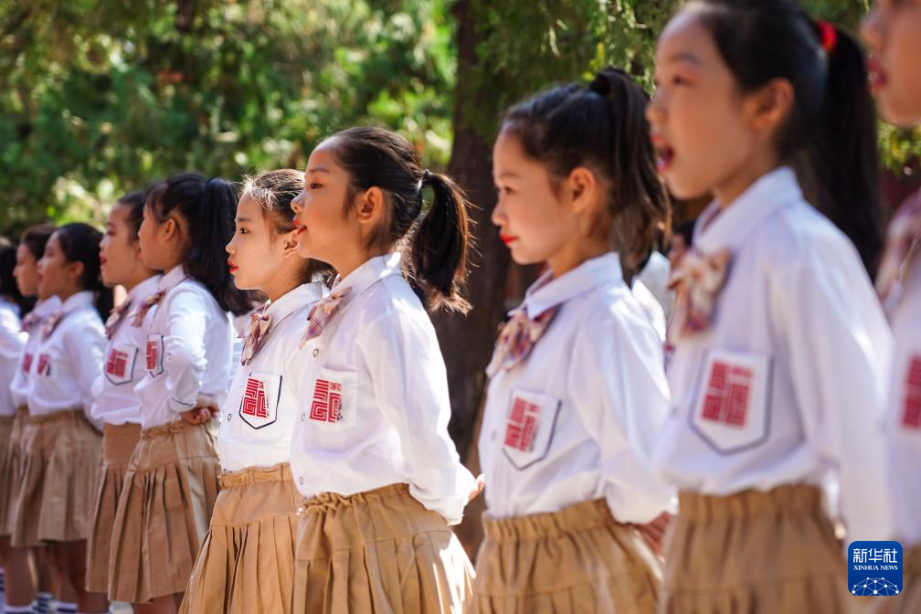 9月28日,在2024甲辰年公祭孔子大典上,小學生在曲阜孔廟誦讀儒學經典。