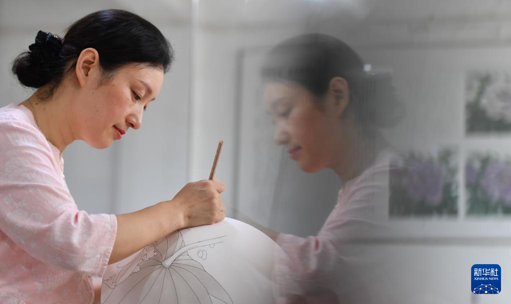 9月27日,醴陵釉下五彩瓷燒制技藝國家級非遺代表性傳承人陳利在制作陶瓷彩繪。