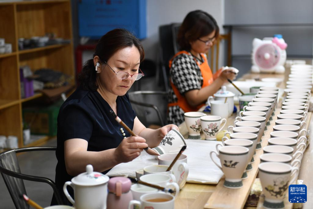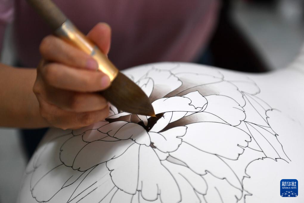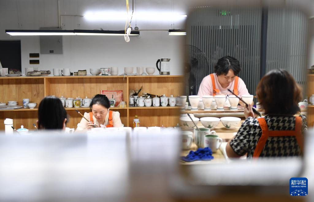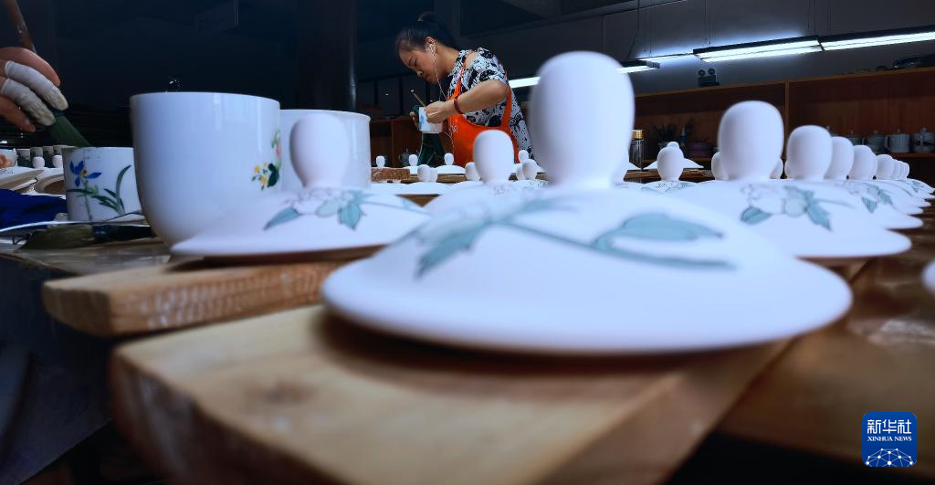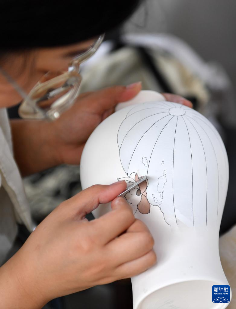 9月27日,醴陵釉下五彩瓷燒制技藝省級非遺代表性傳承人申彬在制作陶瓷彩繪。