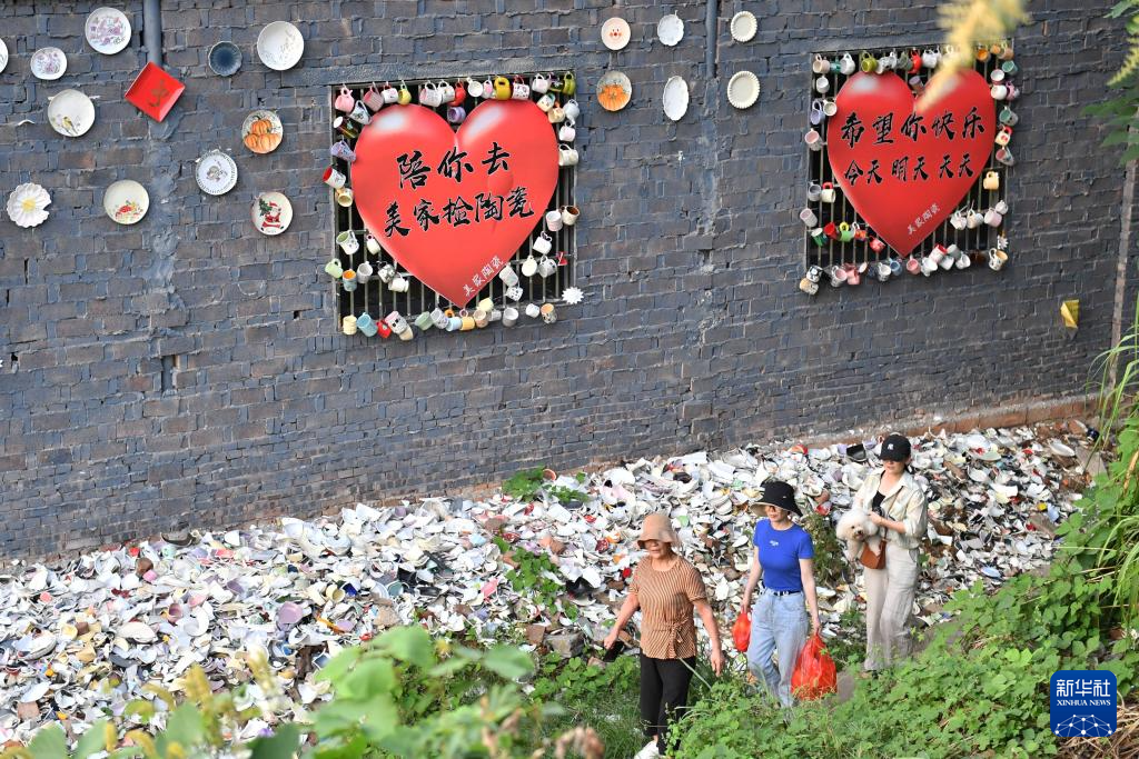 9月26日,游客在醴陵市一處“低價撿瓷區”挑選瓷器后離開。
