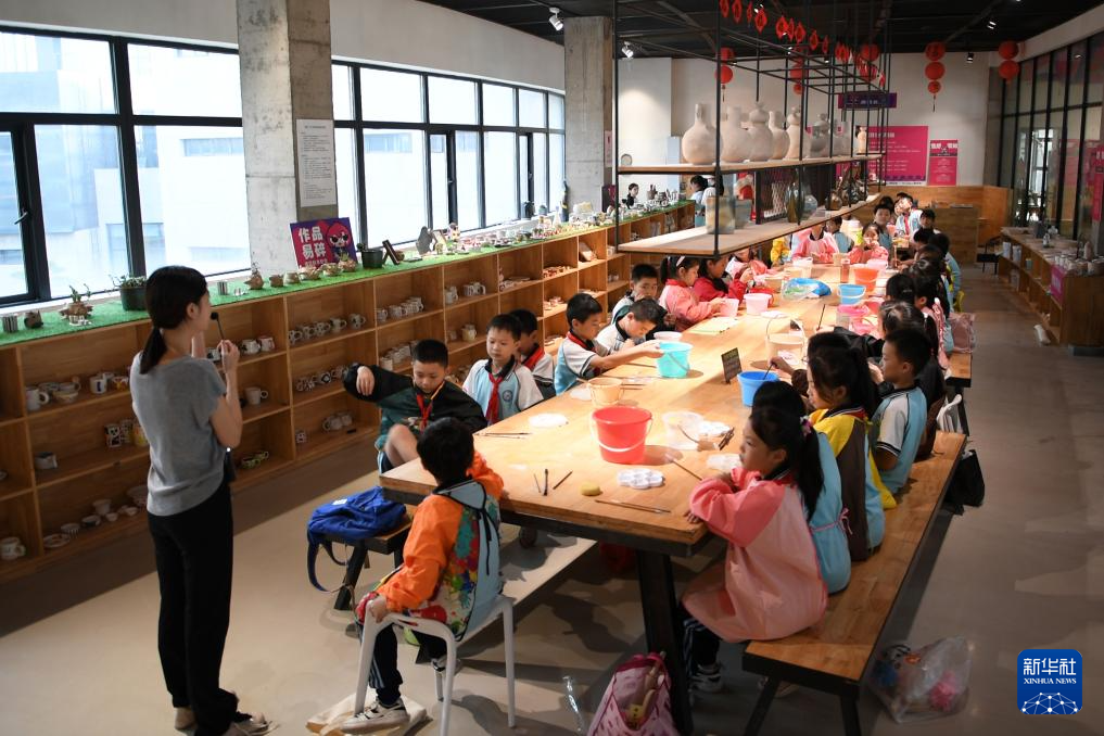 9月27日,在醴陵市一家陶瓷企業,多名小學生在參與陶瓷制作體驗課程。