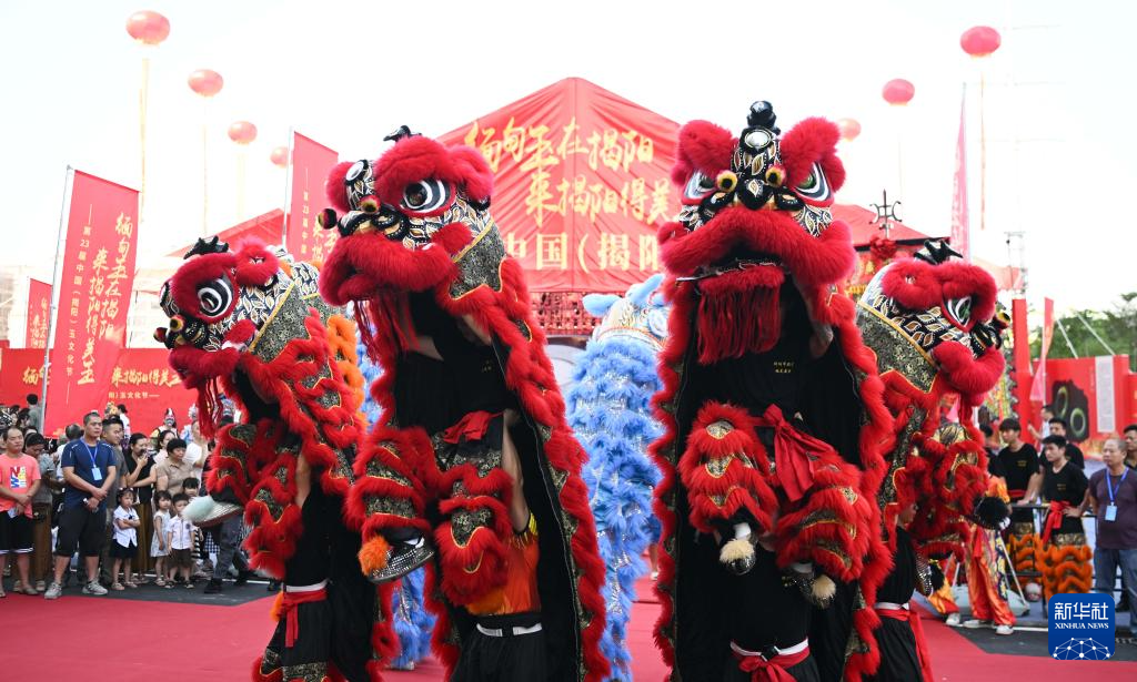 這是9月29日拍攝的第23屆中國(揭陽)玉文化節開幕式上的醒獅表演。