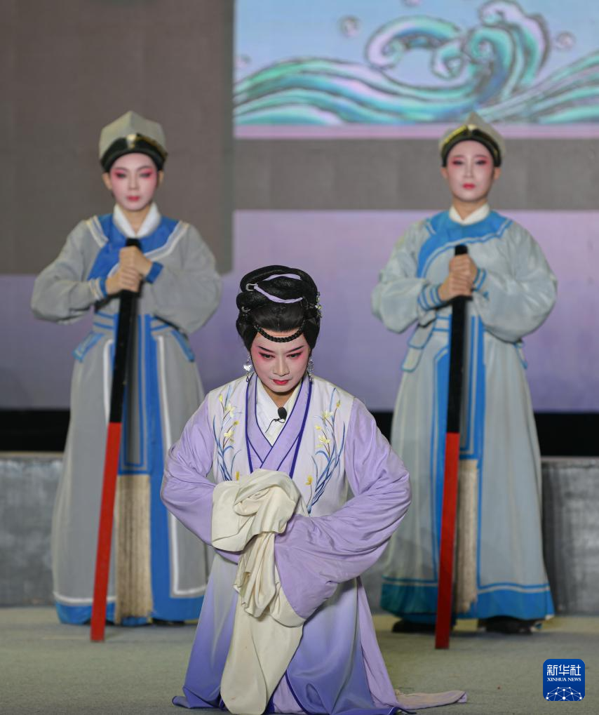 10月6日,“瓊韻薈”瓊劇精品藝術進社區展演在海南省??谑腥f綠園舉行。來自海南省瓊劇院一團的演員們為觀眾獻上了古裝瓊劇《巡按審妻》。觀眾在觀看瓊劇過程中,感受非遺文化的魅力。