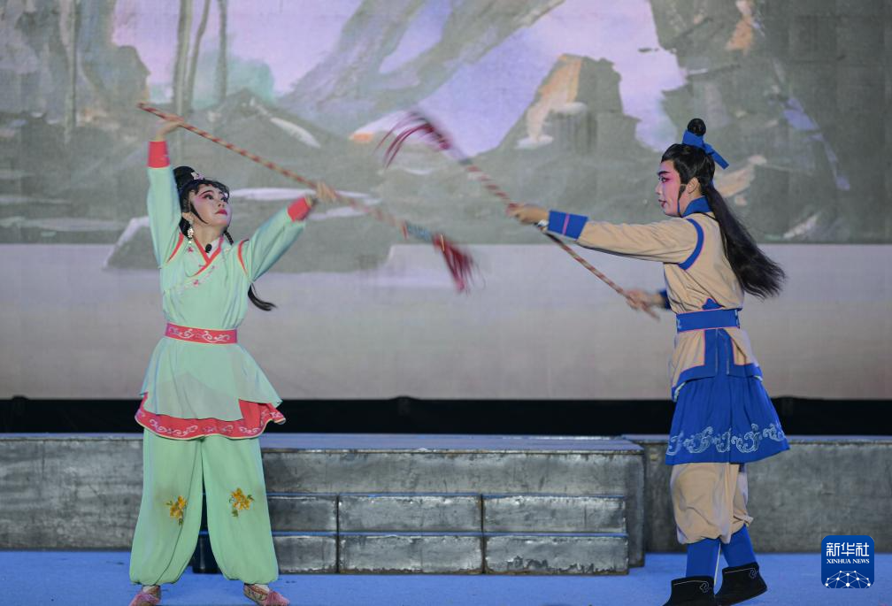10月6日,演員在??谑腥f綠園表演瓊劇。