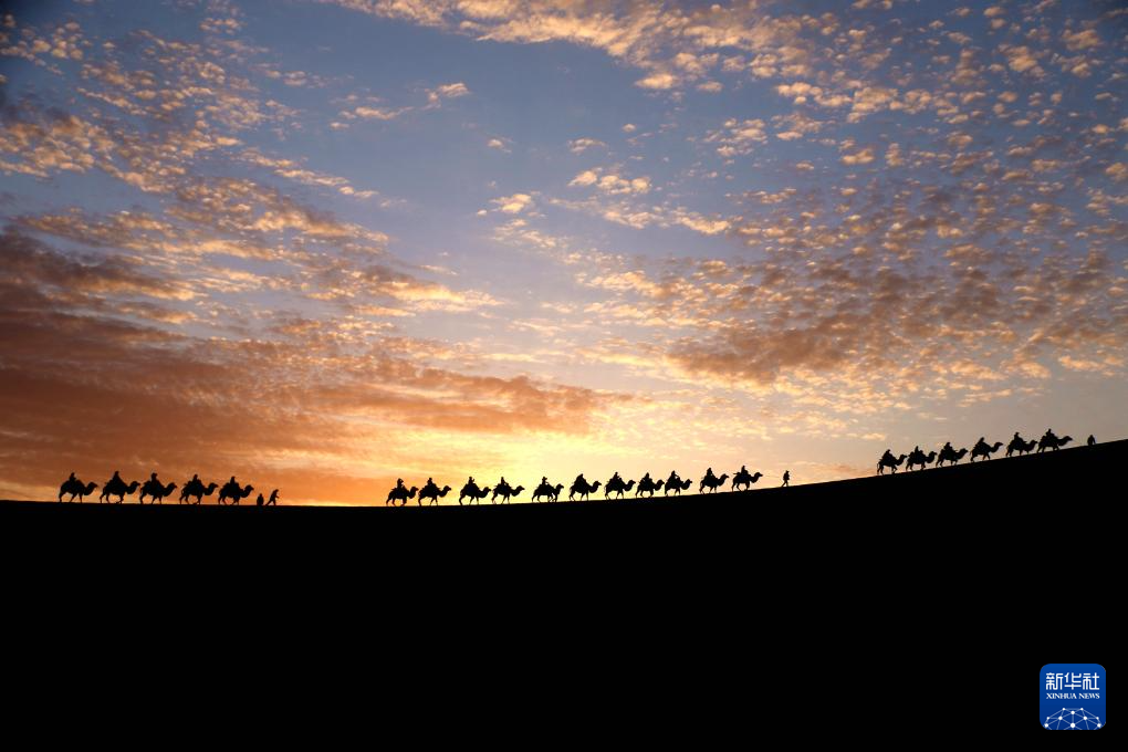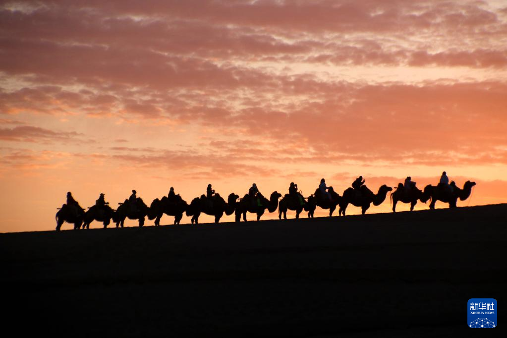 游客在甘肅省敦煌市鳴沙山月牙泉景區游覽(10月4日攝)。
