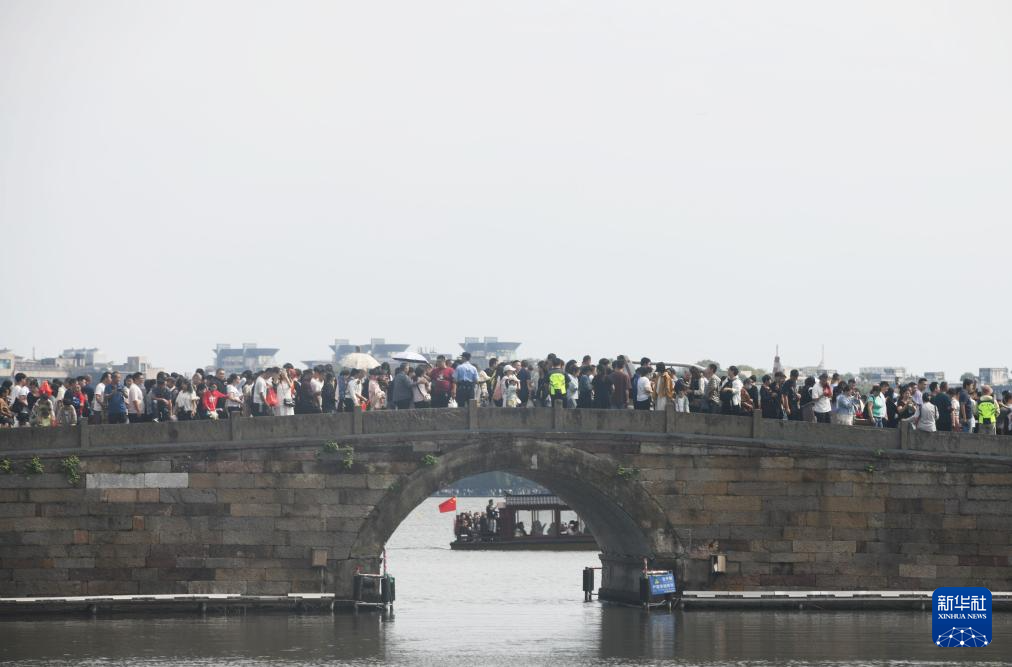 杭州西湖斷橋上人流如織(10月2日攝)。