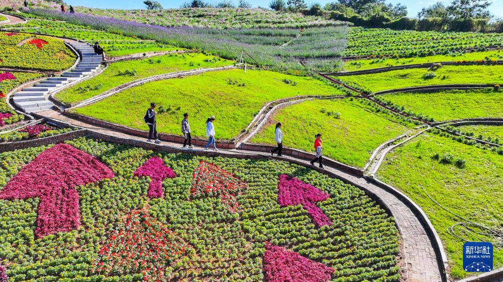 游客在河北省遷西縣舊城鄉雨花谷景區游玩(10月2日攝,無人機照片)。