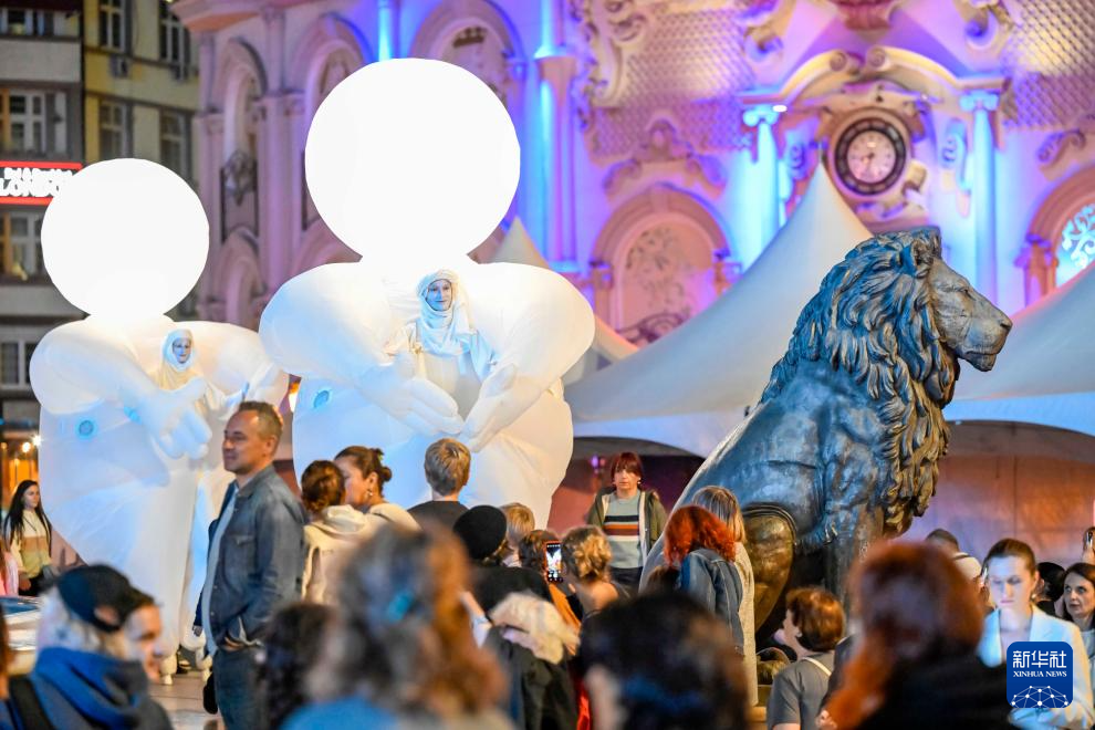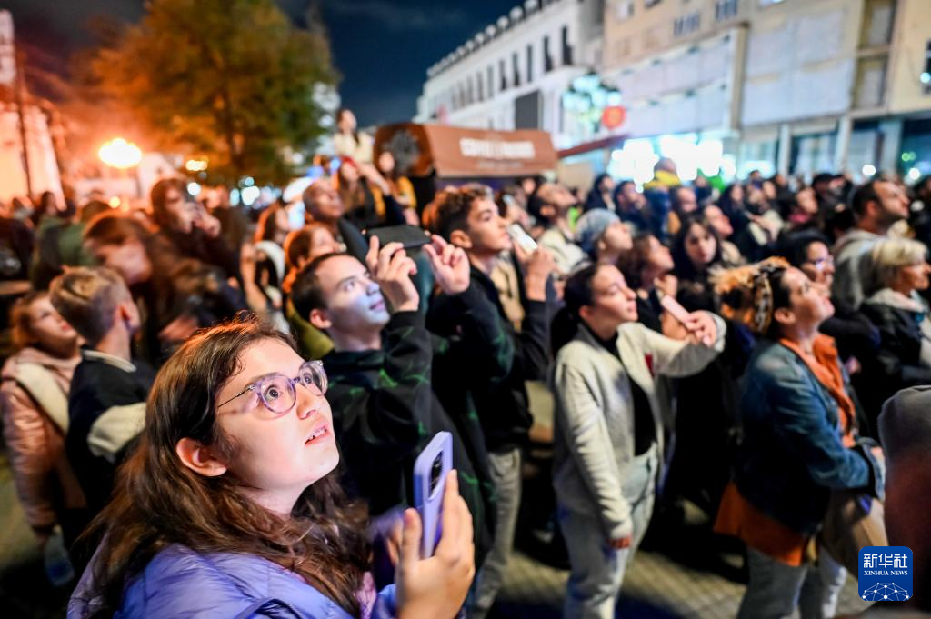 10月5日,人們在北馬其頓首都斯科普里的白夜節活動上觀看表演。
