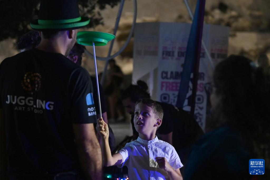 10月5日,兒童在馬耳他首都瓦萊塔的白夜節活動上游玩。